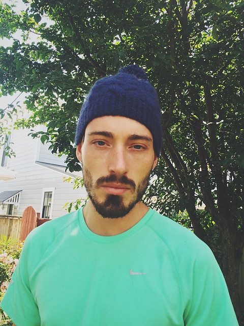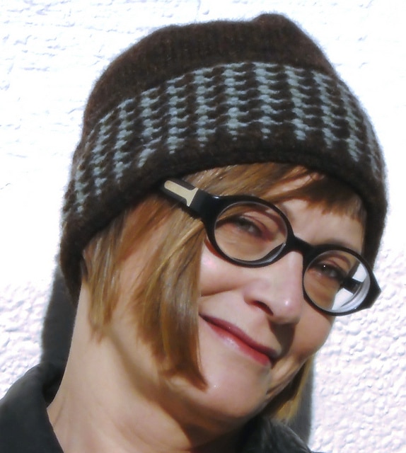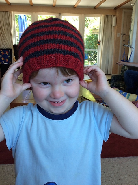 Jen from Wellington knit a fetching version of Alicia Plummer’s free Plimoth modeled by her friend in green. Claudia from Germany is an avid knitter, and the European distributor for Zealana! She shows off two shades of Heron in her own Cap Chapka design. Amy from New Zealand is keeping her offspring toasty with the free Kid’s Stripey Beanie pattern. Jen from Wellington stuck with Heron for Swoon, an easy ribbed toque. Dan from Albuquerque made the supercool Halfdome a sharp looking contrast brim.