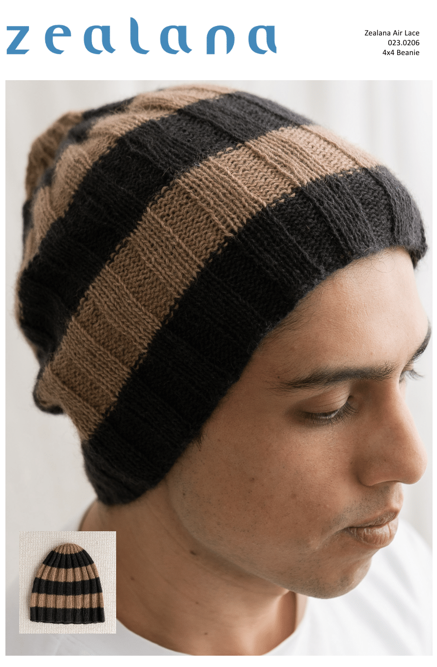 Zealana Unisex4x4 Beanie pattern 023.0206 is knitted in Air Lace