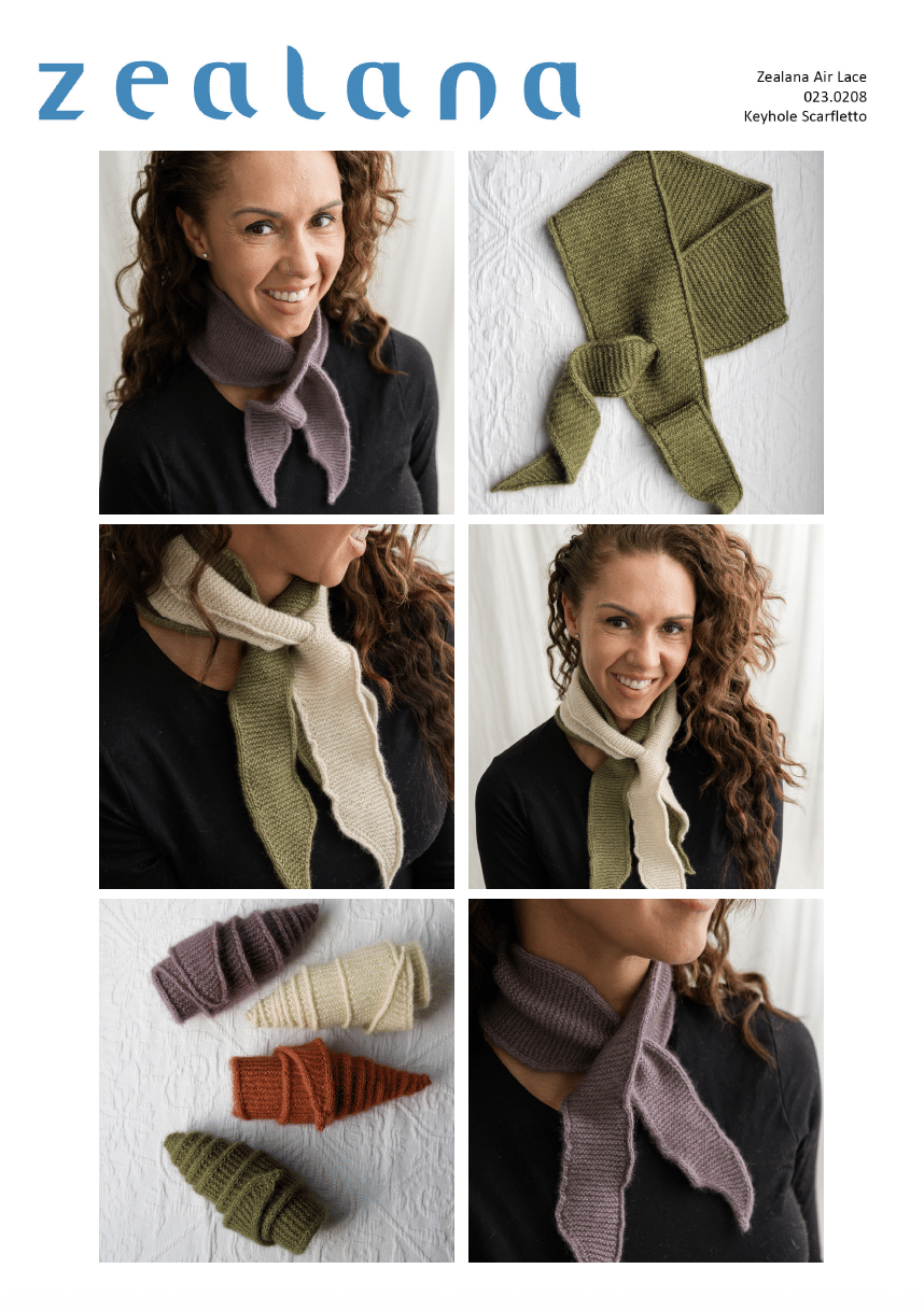 Zealana Keyhole Scarfletto pattern (023.0208) knitted in Air Lace