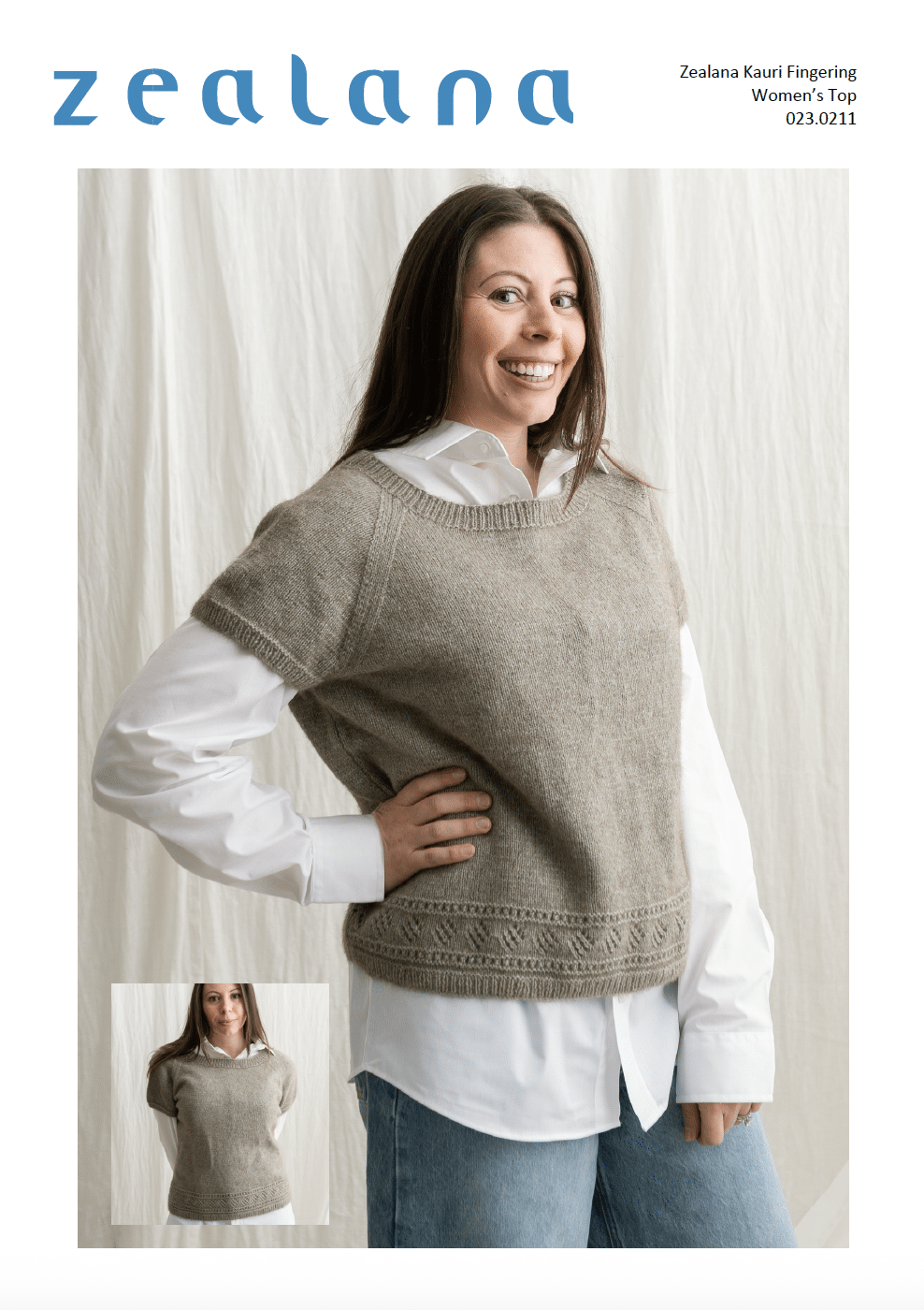 This pattern contains a Women’s Top knitted in Kauri Fingering